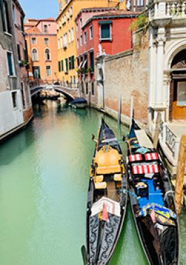 Venedig ist reich an Geschichte, Charme, Kunst und Traditionen. Verspielte Kuppeln, Adelspaläste, Gondeln und Linienschiffe prägen das Bild der Lagunenstadt.